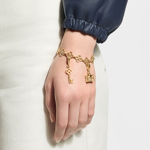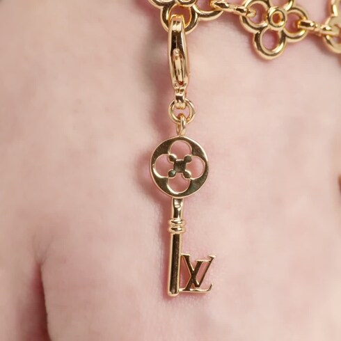 Crafted in gold-toned metal, the Key LV Charm pays tribute to the House’s heritage with playful contemporary flair. Its whimsical design features a vintage-style key integrating a Monogram Flower and the iconic LV Initials. Alone or with other creations from the LV Charms collection, it’s ideal for customizing a handbag, bracelet, necklace or any other accessory.