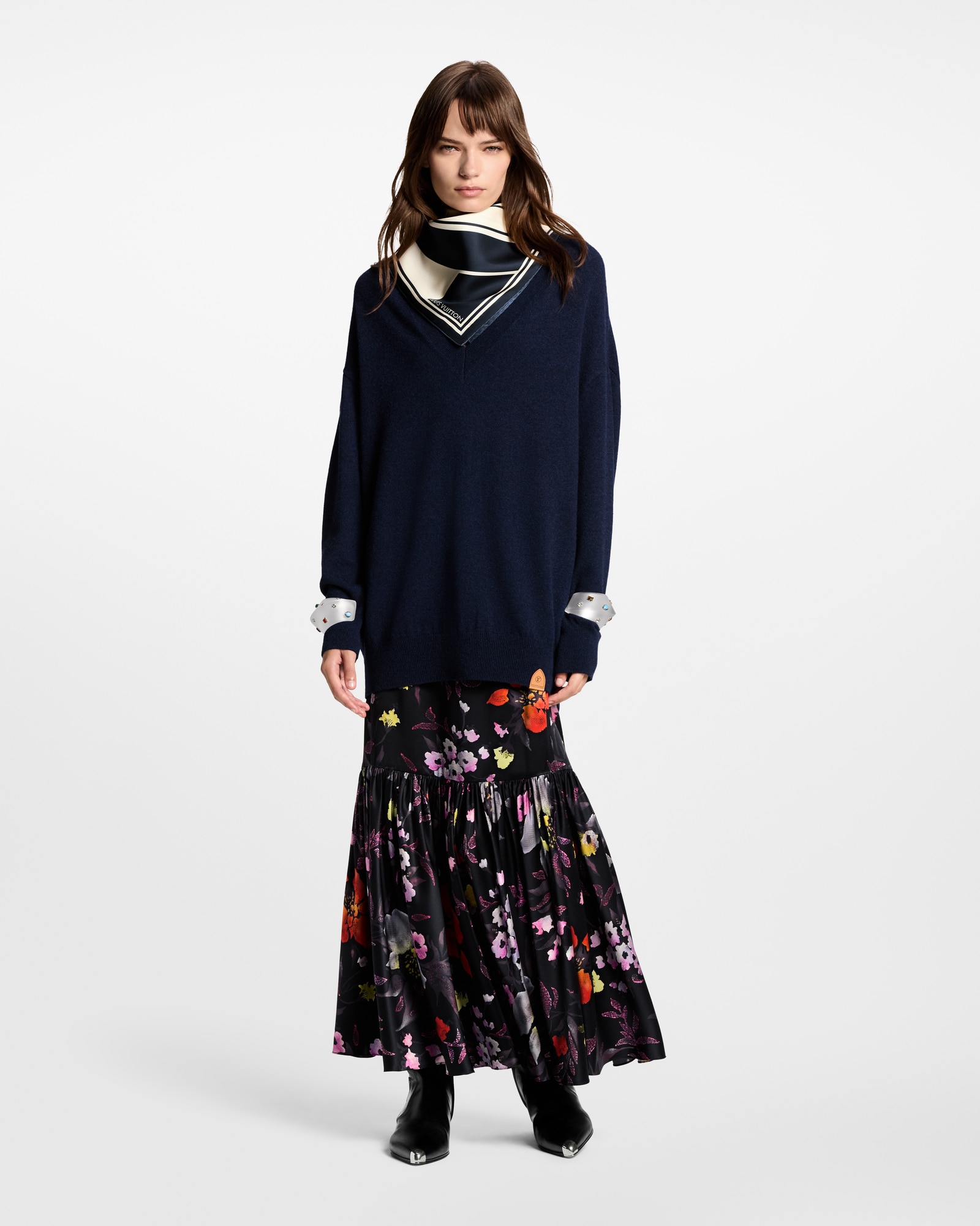 With its spectacular pattern, this extraordinary silk square is a wearable masterpiece. Entitled Le Temps d’Un Voyage, it was originally created in the 1980s by the influential Italian architect and designer Gae Aulenti, inspired by the monumental world clock of the Musée d’Orsay in Paris. A precious accessory, and an eloquent ode to the spirit of travel and artistic creation.