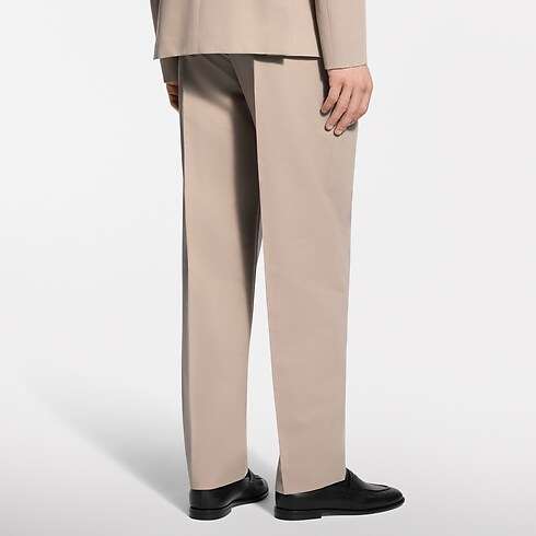 These beige wool-cotton twill pants are a timeless wardrobe essential. They have an elegant double-pleated front and are signed with tone-on-tone embroidery on the right pocket and a woven LV label on the rear waistband. Pair with a matching jacket for a modern twist on the suit, or style with separates for a preppy look.