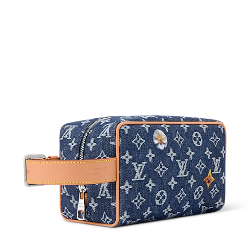 The Locker Dopp Kit takes on a spring-like feel in Monogram Denim, embroidered with delicate florals. Ideal for grooming essentials, it features a wide zipped opening and a washable textile lining. The cowhide-leather handle includes a silver-toned buckle, allowing the length to be adjusted for comfort and convenience.