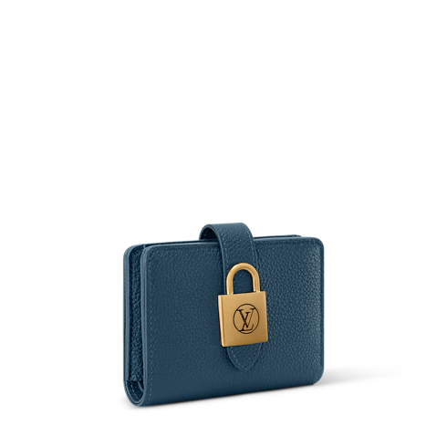 The Low Key collection updates the classic Compact Wallet in an elegant Prussian Blue palette. Embodying minimalist style while celebrating the House’s heritage craftsmanship, the timeless accessory is made from calfskin with a smooth calfskin lining. It is adorned with a sleek LV-engraved padlock in an antique finish, and opens to reveal several pockets and slots for cards, coins, and bills.