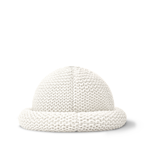 With its intricate pattern and subtle detailing, the LV Roll Bucket Hat is a tribute to Louis Vuitton craftsmanship. Each hat is meticulously crocheted by hand and topped with a gold-colored LV Circle emblem for a discreet House signature. Styled in soft, comfortable cotton, this cozy beanie brings a fresh touch of playful elegance to any look.