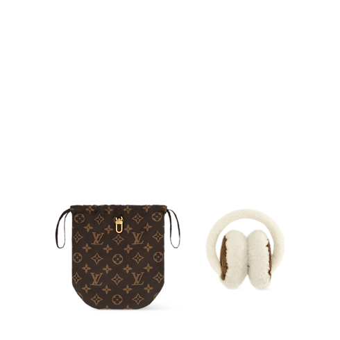 Crafted in plush, fluffy shearling, the LV Cloud earmuffs are the perfect way to stay warm with style all winter long. Their sophisticated design features the LV Initials on one side and a Monogram Flower on the other for an unmistakable House signature. And they fold up to fit in a special Monogram pouch, ideal for travel.