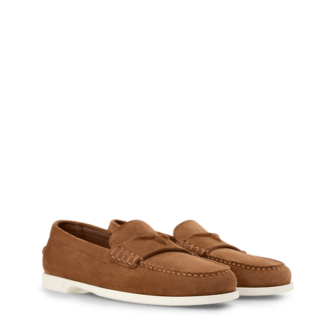 The LV Croisette loafer in suede calf leather draws inspiration from the French Riviera for its relaxed yet stylish design, which is perfect for warmer days. The strap on the upper is signed with a tonal detail of a half Monogram Flower, while the supple and lightweight rubber outsole bears the LV Initials.