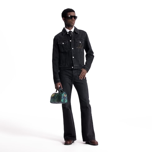 This classic trucker jacket is a wardrobe essential enhanced with Louis Vuitton savoir-faire. It is crafted from premium stonewashed Japanese denim with an embroidered LV signature in tobacco-toned topstitching on one chest pocket, a nubuck Damier jacqueron with an embossed LV on the back and pearl-effect buttons. This effortless piece is easy to mix and match with everyday looks.