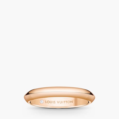 The LV Diamonds wedding band marks an emotional milestone with powerful grace. Cast from 18-karat pink gold and with a shank shaped like a V, this finely crafted ring is designed for both women and men. It can be worn as a wedding band as well as an everyday ring combined with other Jewelry pieces. A secret diamond is hidden on the band’s inner surface, adding special meaning to this jewel, which may be customized, if desired, with an engraved date, message or initials.