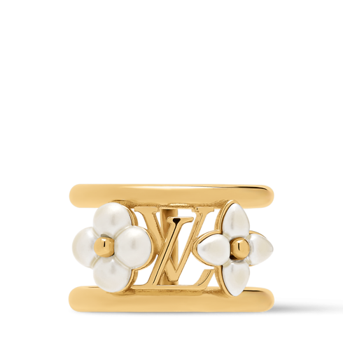 The strikingly elegant LV Floragram XS ring was inspired by the House’s historic Monogram signature and the captivating beauty of mother-of-pearl. Its creative openwork design features a gold-toned metal band adorned with the iconic LV Initials plus two different Monogram Flowers enhanced with radiant pearlescent resin. An eye-catching, feminine ring, perfect for everyday wear or special occasions.