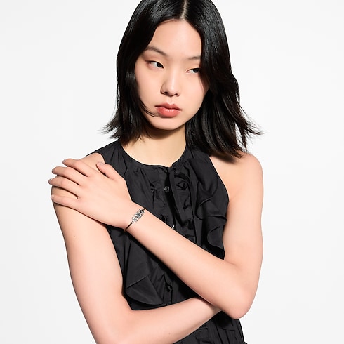 The LV Iconic leather bracelet offers a casual but sophisticated way to wear the Louis Vuitton signature. Styled in Monogram leather, it showcases a trio of House emblems: the LV Initials surrounded by two different Monogram Flowers, all in lustrous silver-colored metal. And it’s fully adjustable to ensure a perfect fit on every wrist.