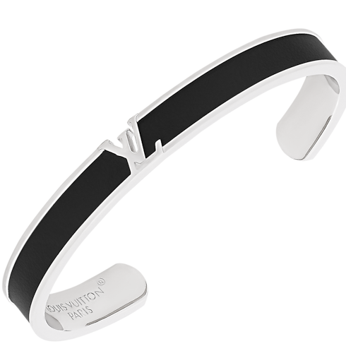 Combining meticulous craftsmanship with sumptuous materials, the LV Initiales bracelet expresses a timeless Louis Vuitton spirit. Its artistic design features a cutout LV Initiales signature in radiant palladium-toned metal, creating a striking contrast with a fine leather lining. Worn alone or stacked with other bracelets, it brings a touch of understated elegance to an everyday look.