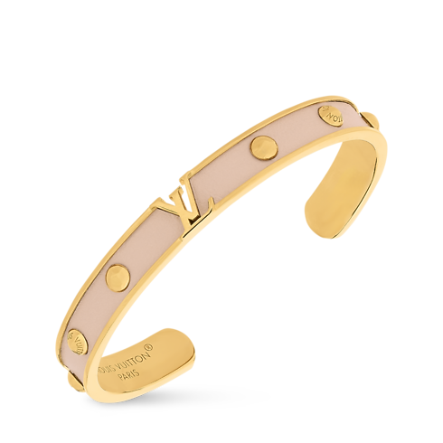 The striking design of the LV Initiales bracelet offers a creative variation on an iconic Louis Vuitton signature. Crafted in gold-toned metal, its studded band is lined with colorful leather, accented by the House’s initials with an original openwork look. Worn alone or stacked, this sophisticated bracelet adds a touch of timeless chic to any outfit.