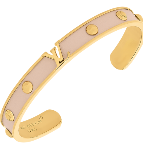 The striking design of the LV Initiales bracelet offers a creative variation on an iconic Louis Vuitton signature. Crafted in gold-toned metal, its studded band is lined with colorful leather, accented by the House’s initials with an original openwork look. Worn alone or stacked, this sophisticated bracelet adds a touch of timeless chic to any outfit.