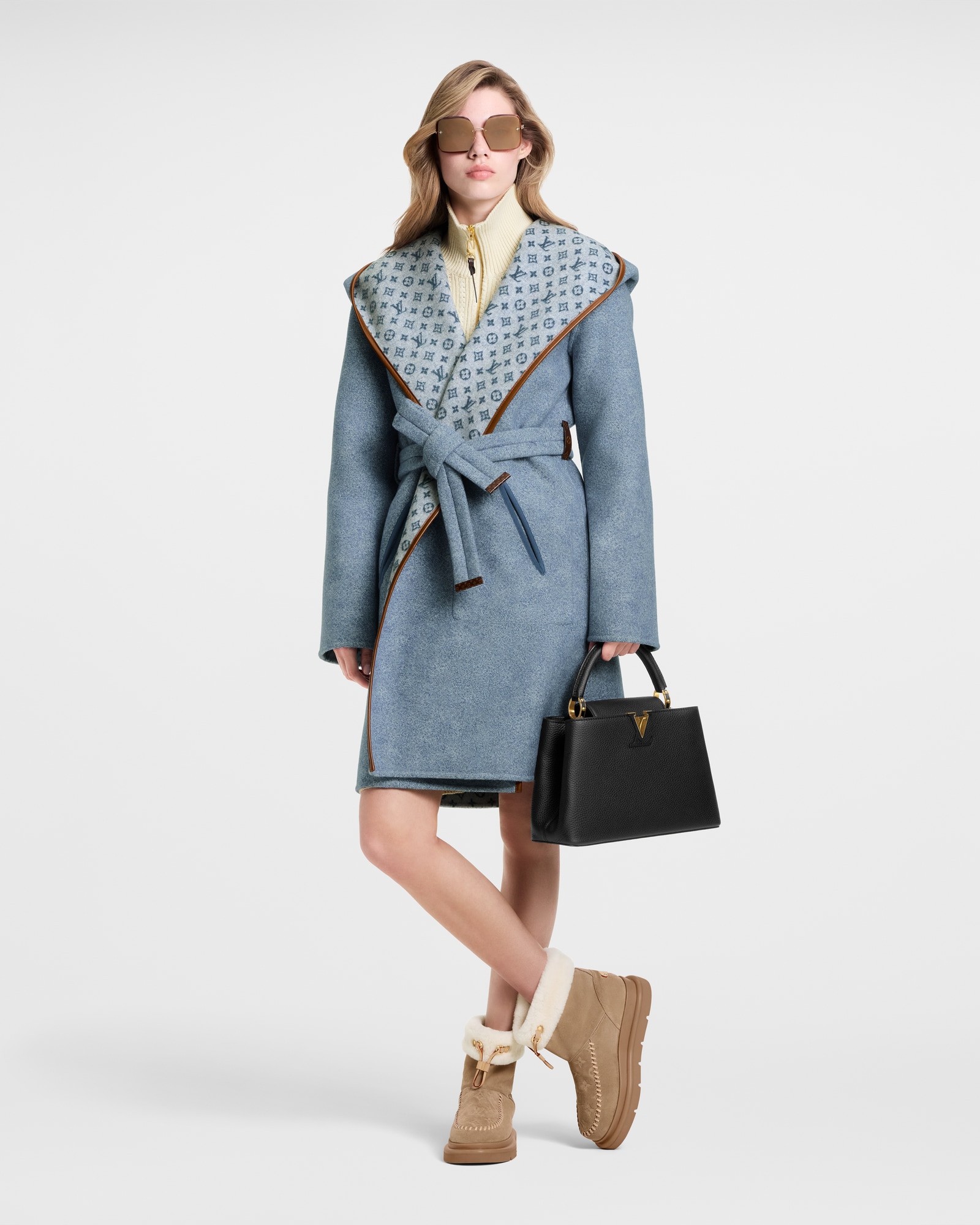 The precious design of the LV Jewel Square sunglasses combines a bold, striking look with rich signature detailing. Their finely crafted chain-link temples integrate the iconic Monogram Flower and LV Initials emblems, echoed by flower-shaped studs on the faceted lenses. Perfect for adding a refined touch of glamour to any winter outfit.