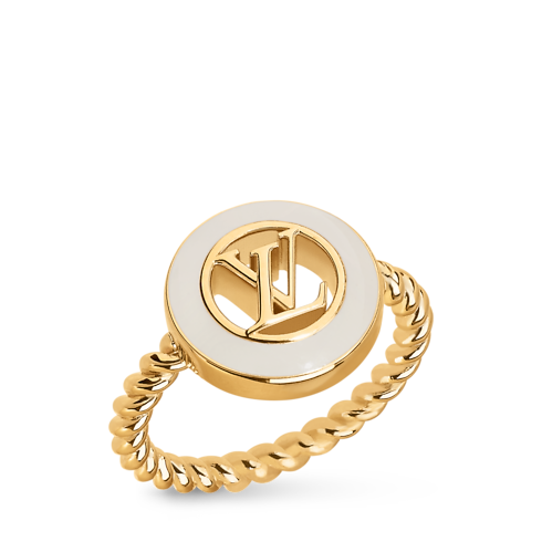 The LV Nautical ring captures the spirit of the open sea in a finely detailed openwork design. Its gold-toned metal band, twisted like a shipboard rope, is adorned with an LV Initials emblem inside a circle of gleaming enamel. This elegant, feminine ring is the perfect complement to the marine-inspired creations from the House’s ready-to-wear range.