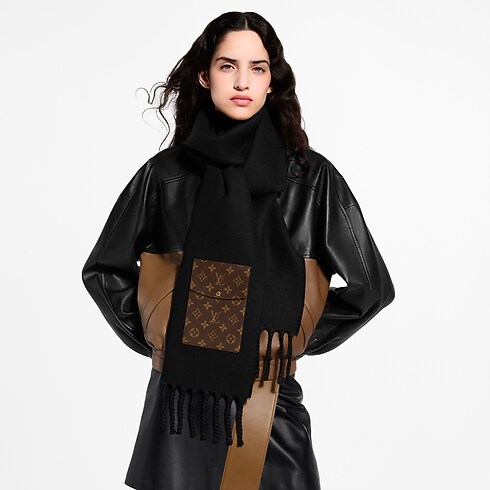The LV On My Way scarf redefines contemporary elegance with an imaginative blend of style and functional versatility. Crafted in plush wool, it features a Monogram pocket with a snap closure for an original House signature. This trendy yet timeless scarf offers warmth and comfort, plus a clever way to keep small personal items close at hand.