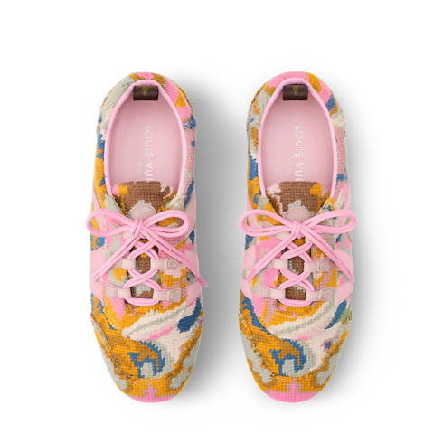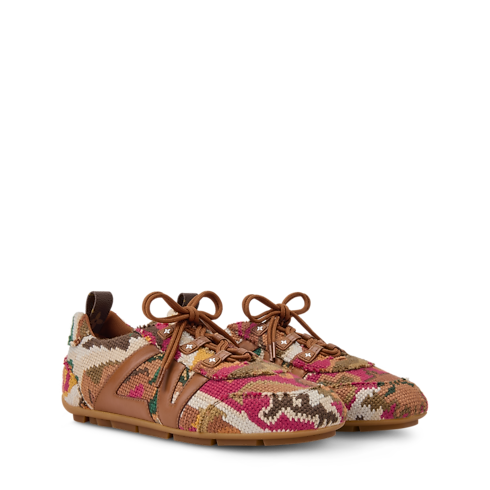 Seen at the Spring-Summer 2026 show, this edition of the LV Sneakerina sneaker ballerina comes in tapestry, drawing inspiration from both oriental carpets and 19th-century French embroidery. The vintage-look floral pattern evokes the House's Monogram Flowers, while the LV on the side is picked out in calf leather. A supple rubber outsole finishes this model.