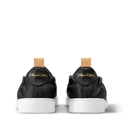 True to its name, the LV Soft sneaker has a uniquely pleasant feel, the result of an upper in supple calf leather, a lightweight sacchetto construction, and an advanced memory-foam insole, which delivers personalized comfort with every step. The elasticized laces and heel allow for an effortless, slip-on fit. Trim in emblematic natural leather complements this design.