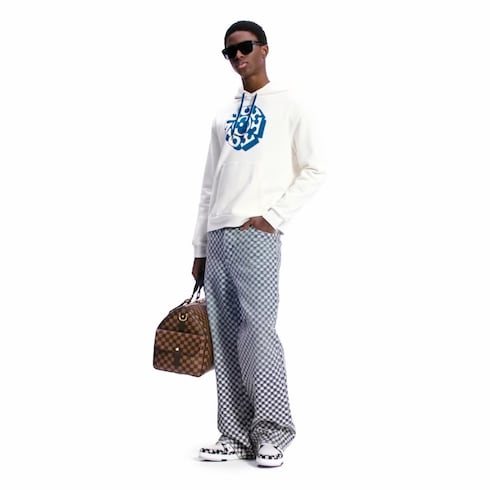 Inspired by the Fall-Winter 2025 men's show, this edition of the LV Trainer sneaker combines Damier denim with smooth calf leather. The elaborately constructed upper, inspired by vintage basketball sneakers, is made of more than 80 pieces. Signature details include Louis Vuitton in script lettering and #54, referring to 1854, when the House was founded.