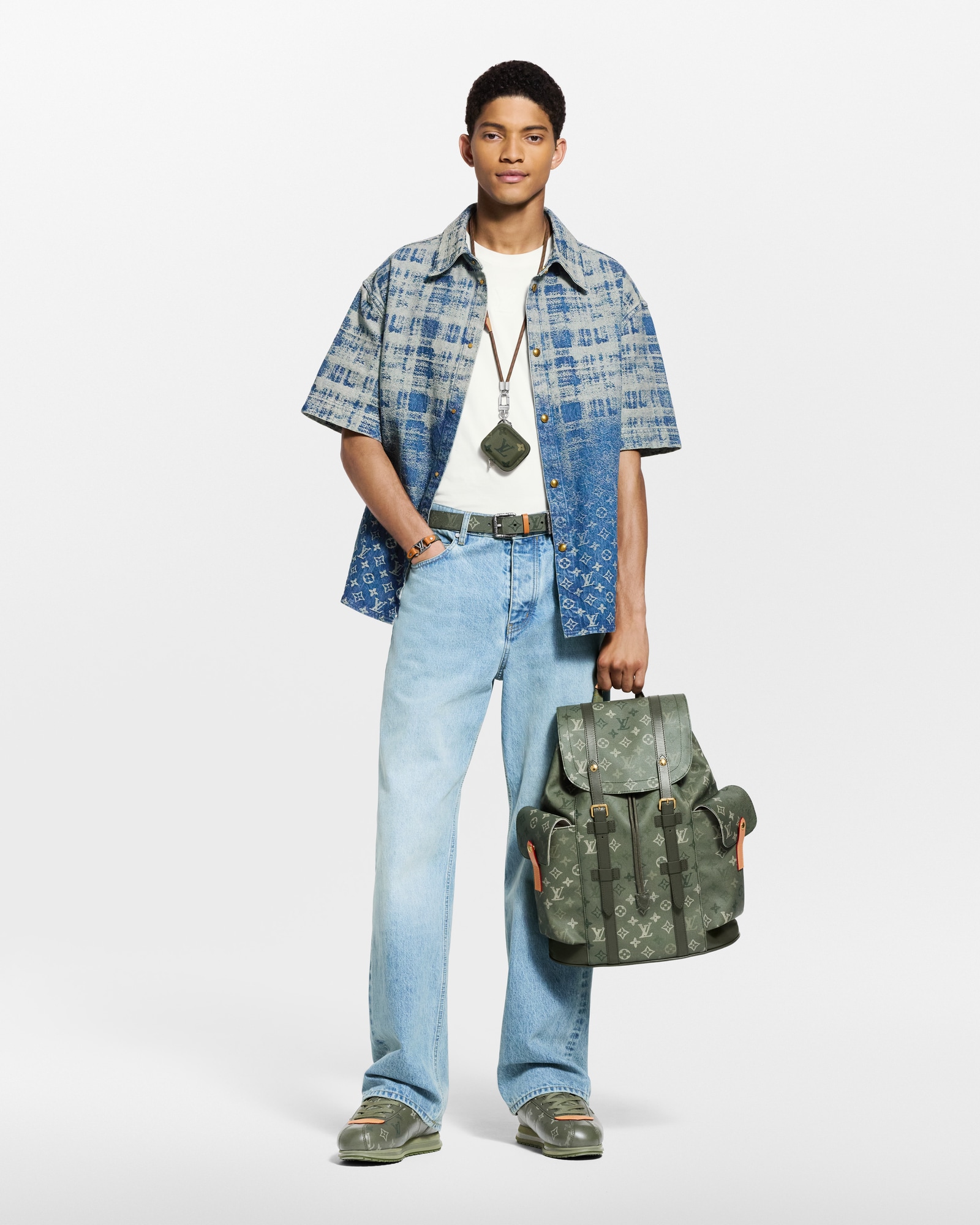 The LV Tune key holder and bag charm is clad in the Monogram Surplus motif, which reimagines the signature with a casual spirit. Covered in a fatigue-green canvas, the square pouch holds a pair of hands-free earphones, too, and a silver-toned hook and cord strap adds to the versatility.