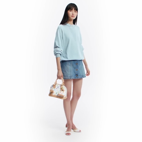Originally inspired by a 1930s Art Deco design, this edition of the Alma BB has a celebratory spirit in the Louis Vuitton x Murakami collection’s multicolored Monogram coated canvas, which draws on the Japanese artist’s playful palette. The House’s natural cowhide leather adds an emblematic touch to the refined Toron top handles, the bottom, the removable strap, and the exclusive LV x TM keybell.