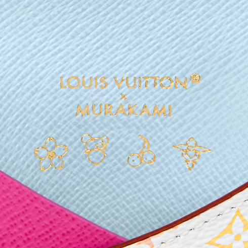 This celebratory edition of the Slim Card Holder marks 130 years of the Louis Vuitton Monogram, and is part of the Louis Vuitton x Murakami collection. Crafted from signature canvas, it is elevated with a multicolor version of the emblematic pattern and features a contrasting, yet equally vibrant leather lining. It is elevated with a gold-toned snap button and includes four card slots.