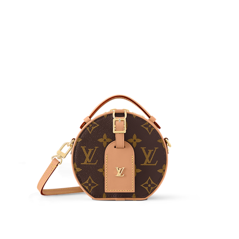 Fashioned from Monogram Reverse canvas, the Mini Boîte Chapeau delights with its iconic shape and classic Louis Vuitton details such as the leather name tag and interior malletage quilting. The zip closure reveals a well-organized inside with two large gusseted compartments. It can be worn as a belt bag, carried by the handle, on the shoulder thanks to the removable strap.