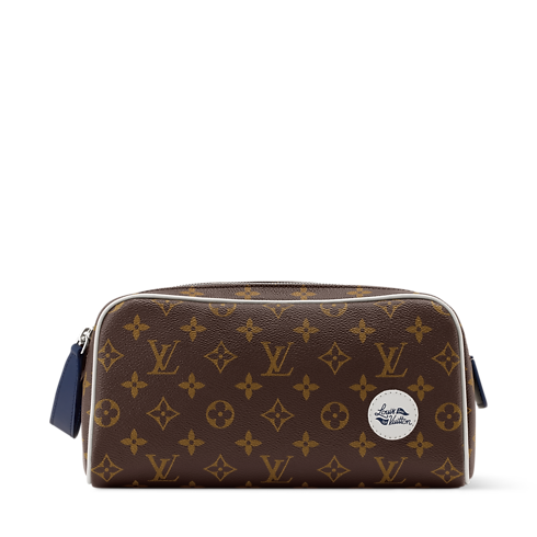 Made from Monogram canvas, this Dopp Kit features a white Louis Vuitton patch as part of the LV Golf collection. A wide double zipper attached to a leather handle offers easy access, making it ideal for grooming essentials. It’s also perfect for keeping small items like a phone or wallet organized and close at hand.