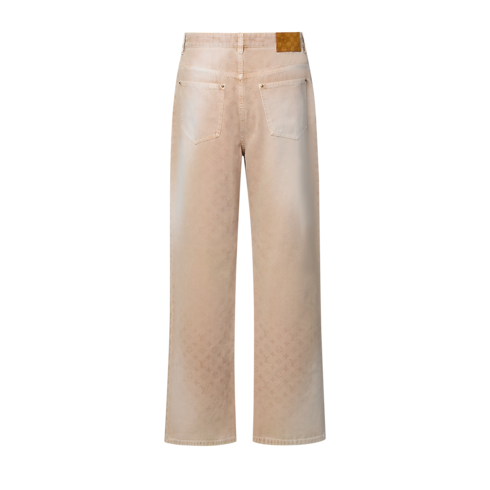 These camel-colored denim skate pants from the Spring-Summer 2026 show have a gently weathered look inspired by India’s natural textile dyeing traditions. They feature a Faded Monogram motif printed onto the cotton canvas while aged gold-toned rivets and a Nubuck Mini Damier jacqueron add refined accents. A matching jacket makes a total look.