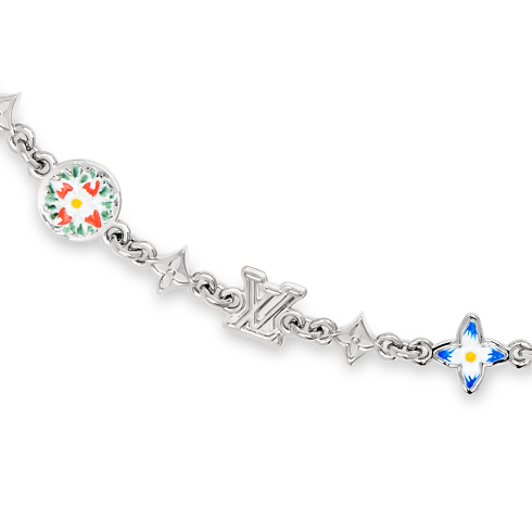 The Monogram Flower chain belt is the perfect product for cllient looking for a signature piece with a touch of colors. The delicate link is composed of Initials and Flower charms from the iconic Monogram of the House, gently dotted with bloom-inspired colors. Its silver-toned construction achieves a versatility that endures and adapts.