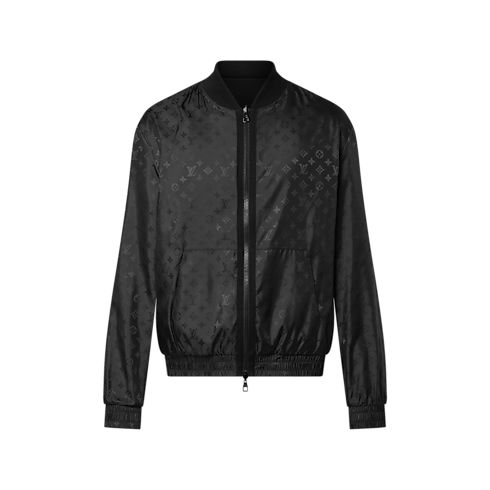 This lightweight reversible bomber is a mid-season essential. It has a shiny technical fabric featuring the Monogram motif on one side and compact cotton knit on the other. The collar is ribbed, while Monogram fabric covers the bottom hem and cuffs. It has a zipped double puller closure with knitted trim on the Monogram side. An embroidered LV on one kangaroo pocket completes this piece.