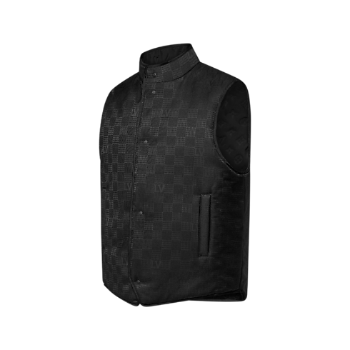 This reversible black gilet is a lightly padded, mid-season piece that can be styled under a coat or worn more casually as an outer layer. It is adorned with a quilted Monogram motif on one side and a jacquard Damier on the other, bringing a choice of graphic and timeless signature accents to a look.