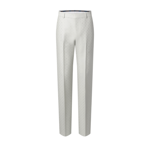 These tailored evening pants stand out from the crowd in a pale ivory hue for summery celebrations. Crafted in a luxurious blend of silk and mohair, they are adorned with a tone-on-tone jacquard Spaced Mini Monogram motif, which is expressed in a subtle play of matte and lustrous textures. A matching double-breasted jacket makes a sharp suit.