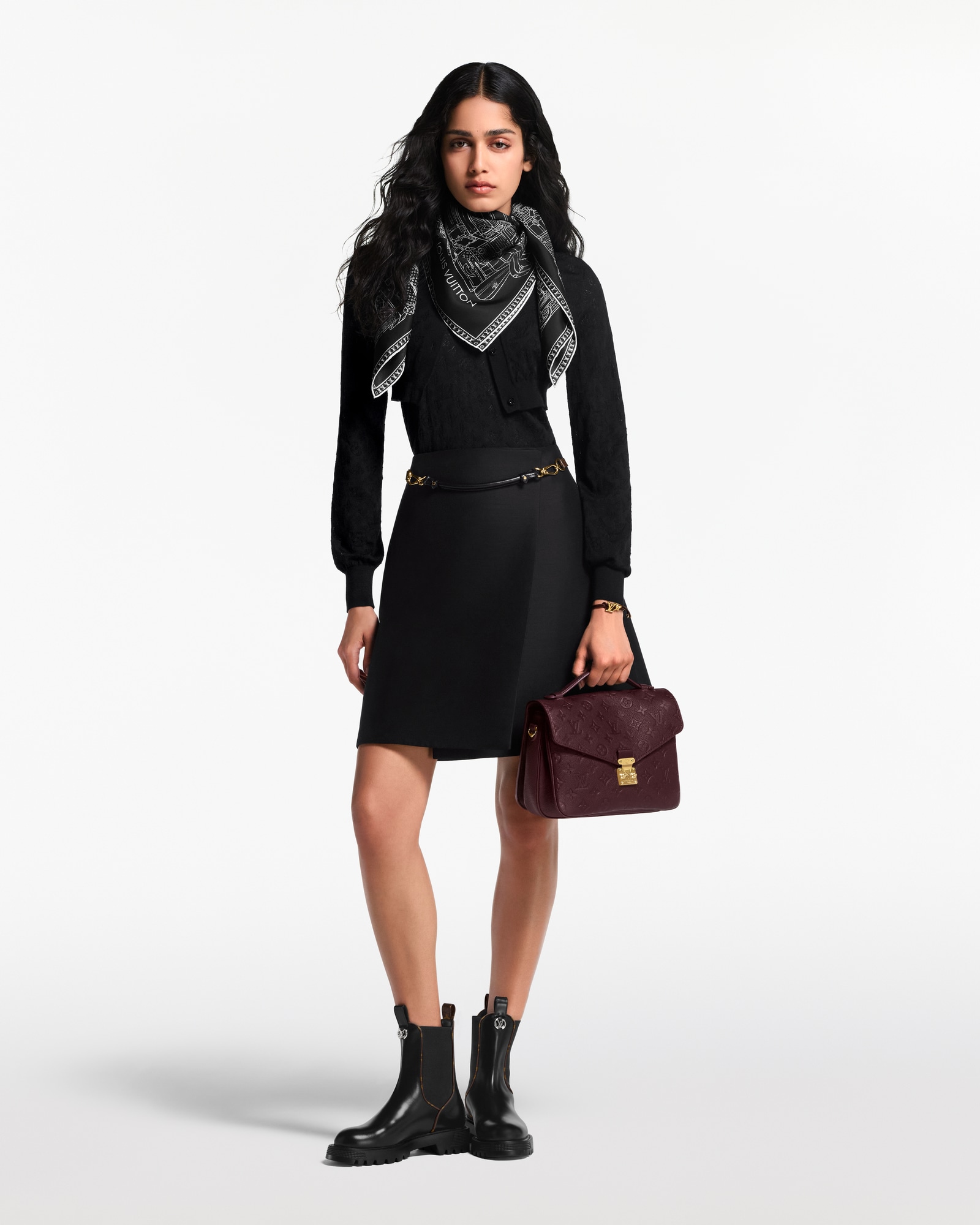 The My LV Luggage square is a tribute to the House’s legendary heritage and savoir-faire. Printed on fine silk, a minutely detailed pattern of classic trunks and bags is accented with the iconic Monogram Flowers and LV Initials for a subtle signature. A timeless accessory, and an elegant evocation of the pleasures of travel with Louis Vuitton.