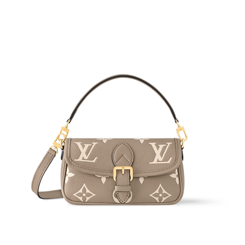 A miniature version of the Diane bag, the Nano Diane comes in Louis Vuitton's iconic Monogram canvas. Ideal for essentials including a phone, this model is complemented by natural leather trim, which highlights its distinctive rounded flap and magnetic, belt-style closure. A removable handle and removable, adjustable shoulder strap offer different carry options.