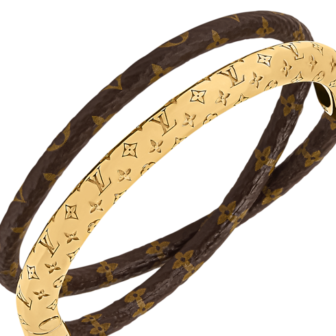 With its eye-catching contemporary design, the Nanogram Twist bracelet makes a striking style statement. Its double-wrap cord combines Monogram leather with a sleek curve of gleaming gold-toned metal, adorned with the Nanogram signature for a distinctive House touch. Creating an on-trend stacked look, this easy-to-wear bracelet is perfect for women who appreciate bold, creative accessories.