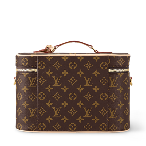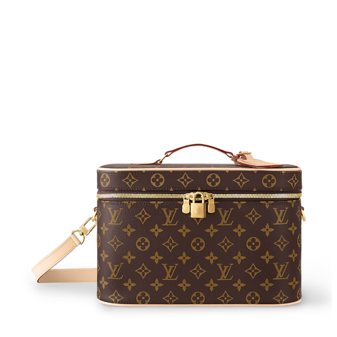 The House spirit of travel infuses the Nice Vanity case, a bag as stylish as it is functional. Fashioned from signature Monogram canvas, it ensures that toiletries and other beauty essentials stay organized and secure. Trimmed in natural cowhide leather, it is accented with polished golden hardware, including a padlock and engraved LV zip pulls.