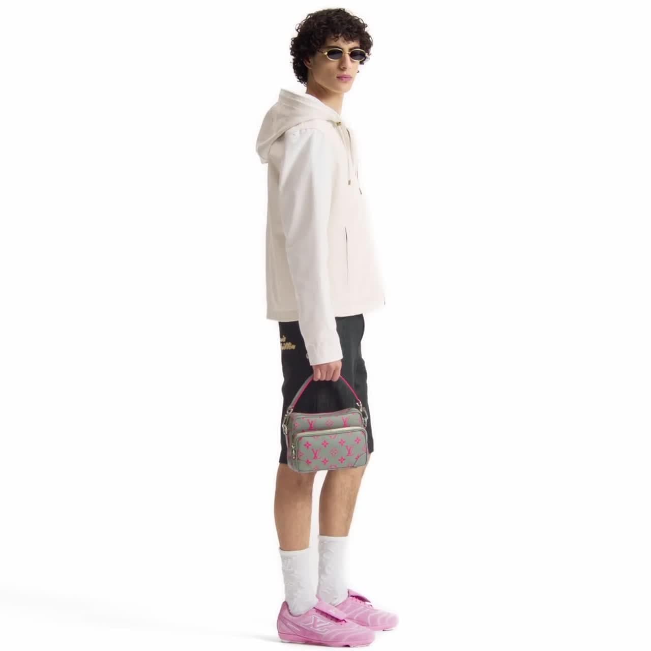 The iconic Nil bag, one of the 1980s shapes revived by Pharrell Williams, is made from Monogram Glow canvas. The colorful pattern draws inspiration from the neon lights of Miami. This vintage design includes a main compartment and a front zipped pocket. A removable top handle and a detachable leather shoulder strap give carry options.