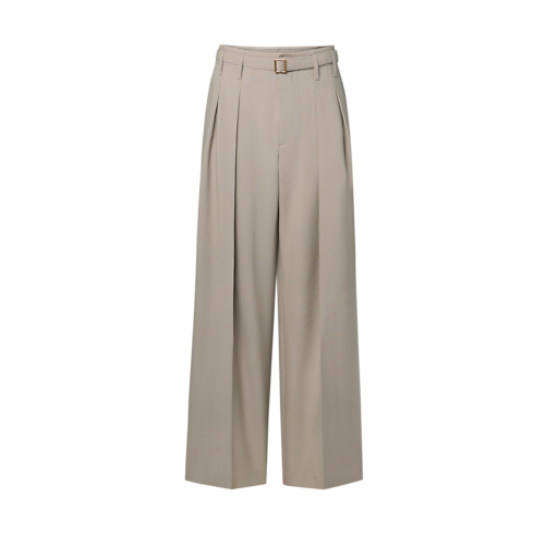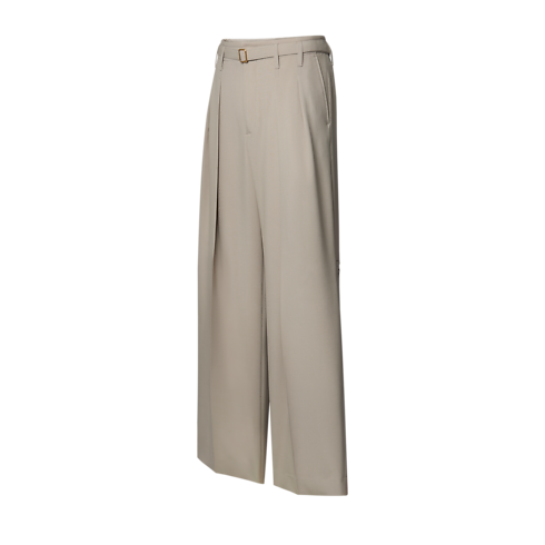 These belted pants, crafted from fine, responsibly-sourced wool in a classic beige hue, embody the effortless elegance of the Spring-Summer 2026 show. The relaxed fit with a pleated front creates a fluid silhouette, while tone-on-tone Louis Vuitton Paris embroidery adds a discreet signature above a rear pocket. A go-to style for completing this season’s timeless looks.