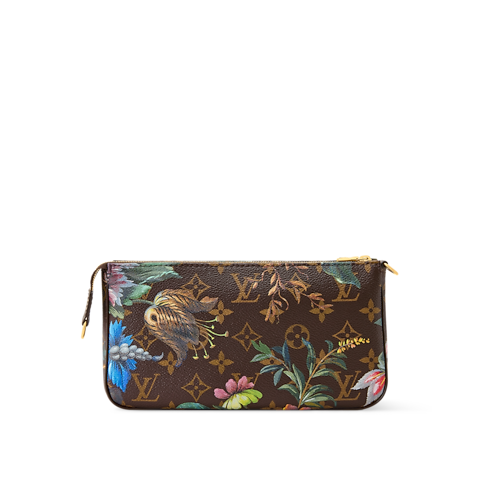 This Monogram Eden edition of the Pochette Accessories strikes the balance of glamour and sophistication with its unique floral motifs. The compact design is crafted from signature Monogram canvas, trimmed with smooth cowhide and finished with sleek gold-toned hardware. It opens to reveal a large compartment to store everyday essentials, and includes a flat pocket to keep a few cards or notes organized.