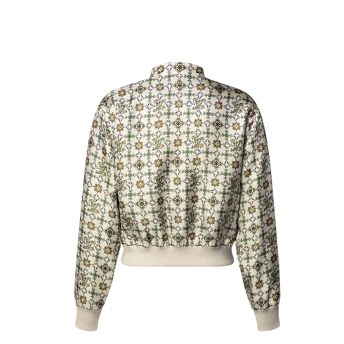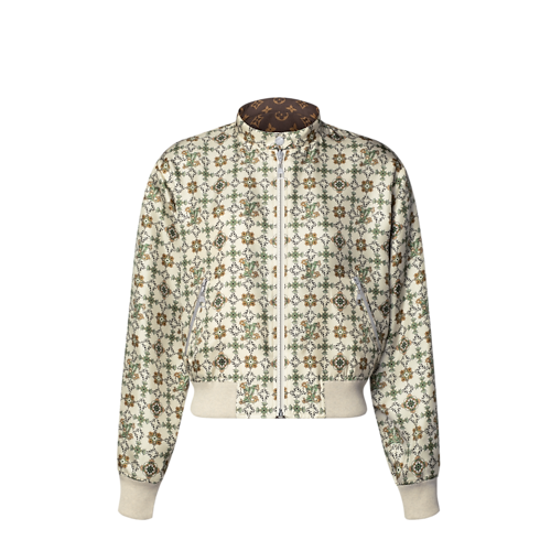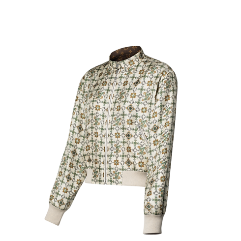 One side of this bomber jacket pays homage to the House’s Art Nouveau roots in an elegant allover floral print discreetly detailed with iconic Louis Vuitton signatures. The reverse features a classic Monogram jacquard with contrasting wool accents. It is crafted from soft silk twill with a zipper fastening and a snap-button collar for a modern finish.