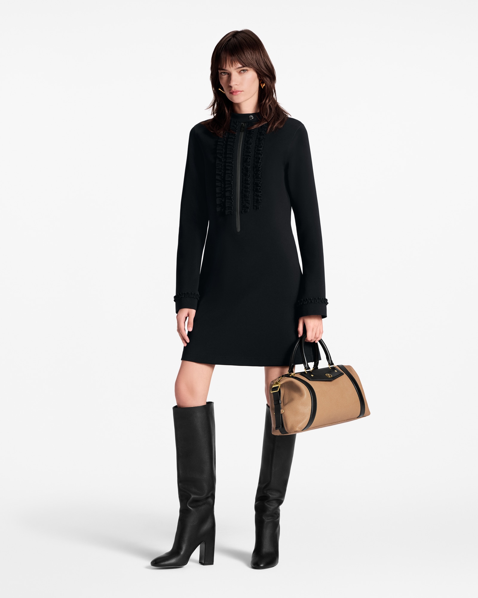 •  Ready-to-Wear Dresses Ruffle Trim Long-Sleeved Technical Jersey Dress | Louis Vuitton ® (Product zoom)