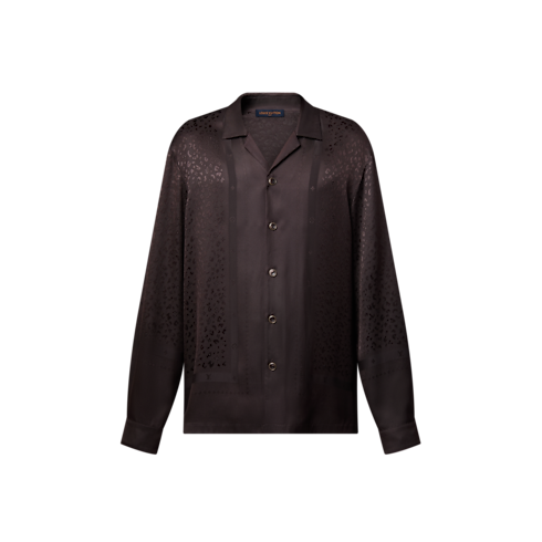 Richly embellished like a scarf, this fluid silk-blend pajama shirt in rich brown tones is elevated with this collection’s LV Cheetah jacquard, with discreet Monogram signatures integrated into the graphic feline pattern with a lustrous play of textures. The flowing, relaxed silhouette makes a comfortable and chic evening set paired with matching pants.