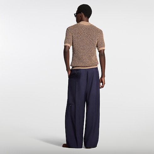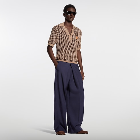 A textured mesh knit distinguishes this elegant polo shirt from the Spring-Summer 2026 collection. The light cotton in speckled beige and coffee tones is accented with a VVN-colored leather Marque L.Vuitton Déposée patch on the chest and pearly buttons on the placket. This refined piece brings a dapper twist to this season’s relaxed silhouettes.