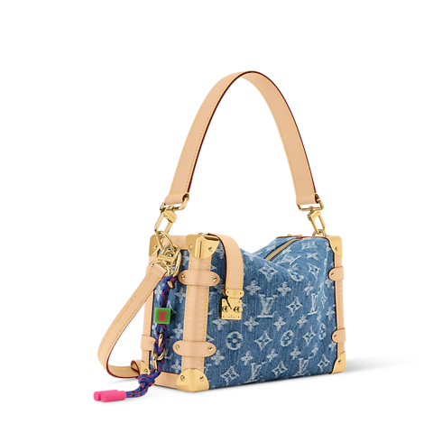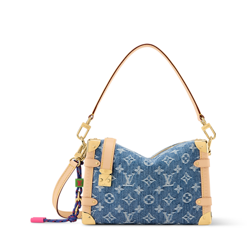 The original Side Trunk MM was designed in honor of traditional Louis Vuitton luggage and this Denim Rendez-Vous edition takes all the classic codes, while adding a contemporary spin. It is patterned with the House's Monogram and features smooth leather trims, alongside a colorful charm that can be removed if desired. The versatile design is elevated with a gold-toned S-lock and fits everyday essentials inside.