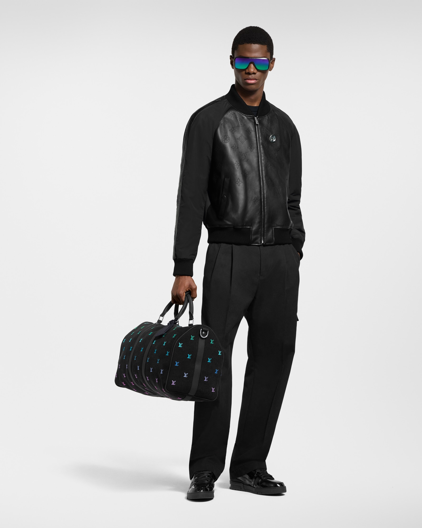These cotton chino pants have a casual yet elegant silhouette with a pleated front, with flap and patch pockets adding a workwear twist. Applied signatures add a preppy accent, with an elegant embroidered Louis Vuitton in a cursive script on the left leg, while a rhinestone-embellished LV patch signs the back. The black color makes this a versatile piece for completing everyday looks.