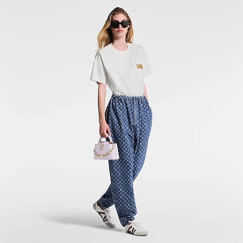 This crop top is cut in a boxy T-shirt shape from soft cotton jersey for casual and comfortable daily wear. The chest pocket strikes a subtle contrast in tone-on-tone cotton gabardine, while a golden Louis Vuitton plaque completes the look with a chic signature touch.