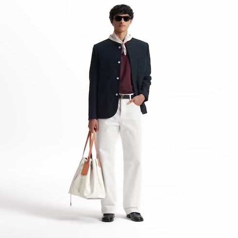 These skate pants, crafted from premium Japanese denim, are a wardrobe essential enhanced with Louis Vuitton savoir-faire. Their casual silhouette in timeless white is ideal for completing summery looks. Exclusive details include contrasting off-white topstitching, an embroidered LV signature on a rear pocket and signed nubuck patches on the ticket pocket and waist.