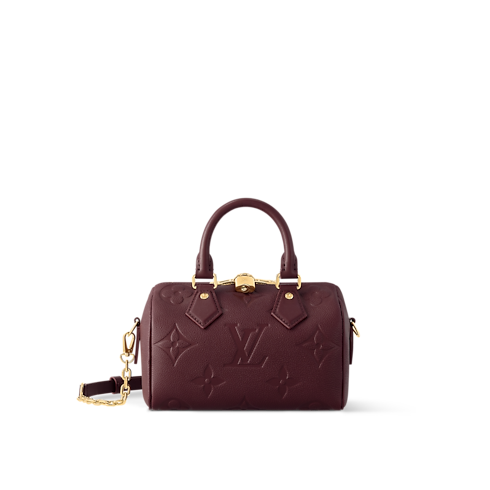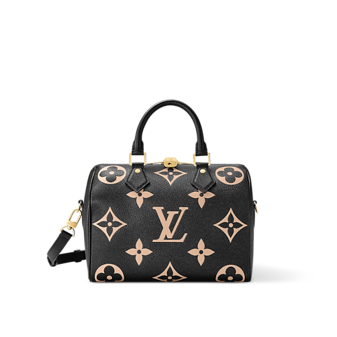 Made from two-tone Monogram Empreinte leather with the LVs and Monogram Flowers in a cream color, the Speedy Bandoulière 20 handbag is a modern classic. Inspired by the House’s Speedy luggage line introduced in the 1930s, it features the same shape and articulated top handles. A chain-and-leather strap enable shoulder and cross-body wear.