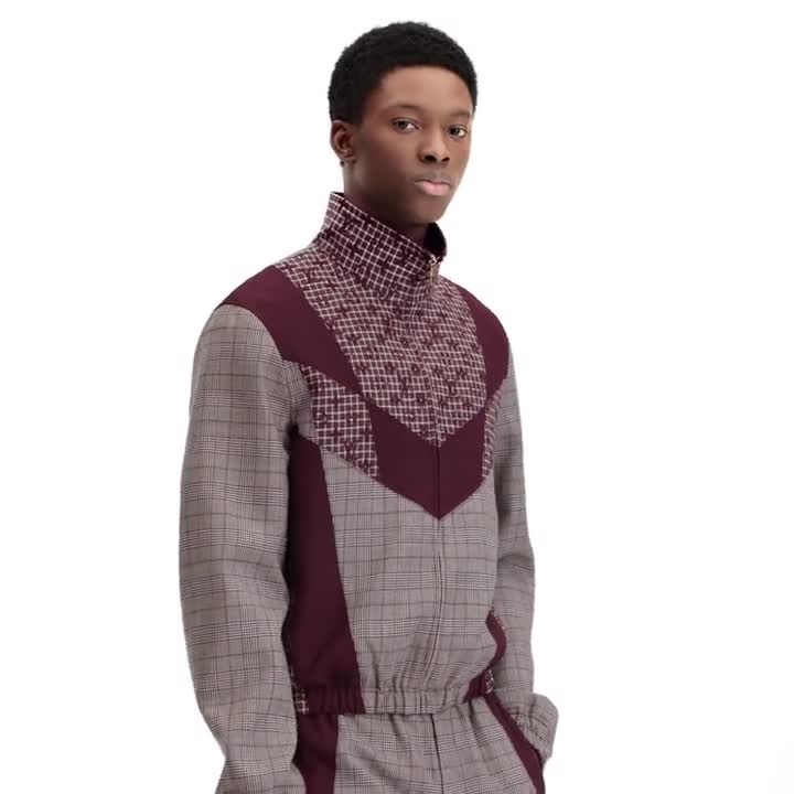 These tailored track pants offer a chic sartorial twist on a casual silhouette. Inspired by this collection’s family reunion in a British country house, their sporty panels juxtapose heritage fabrics in rich burgundy tones, combining glen plaid with a graphic Monogram check. Pair with a matching jacket for a modern yet timeless look.