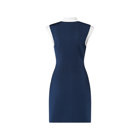 This dress is sleek and sporty in smooth, form-fitting technical jersey detailed with princess seams that accentuate a feminine silhouette. Color-blocking highlights the standing collar, cap sleeves and snap-button tab for a graphic look that nods to sailor styles. The top snap button is discreetly detailed with an anchor motif from the Nautical collection.