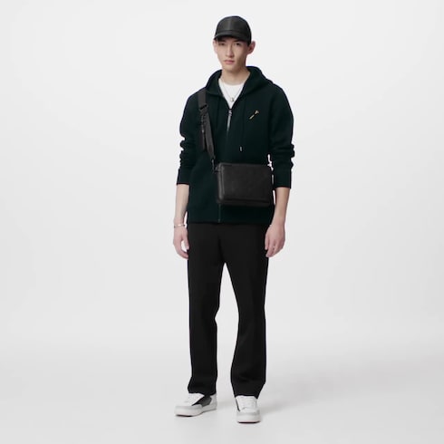 The Trio Messenger in Monogram-embossed calf skin is a fashionably hybrid bag. It combines a main compartment and a removable front zipped pocket, with a detachable small coin purse on strap. An adjustable and removable "Louis Vuitton"-signed jacquard textile strap enables comfortable shoulder and cross-body carry.